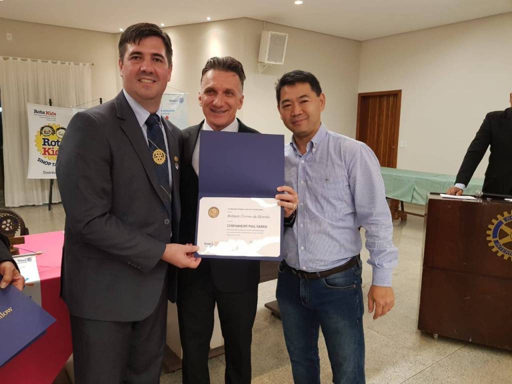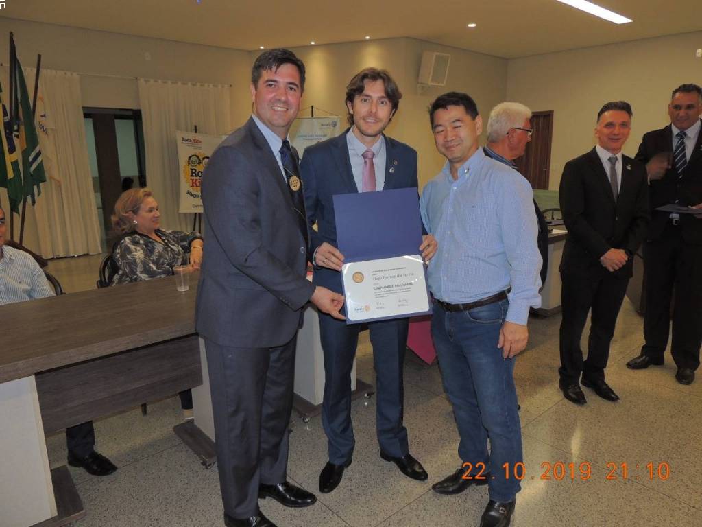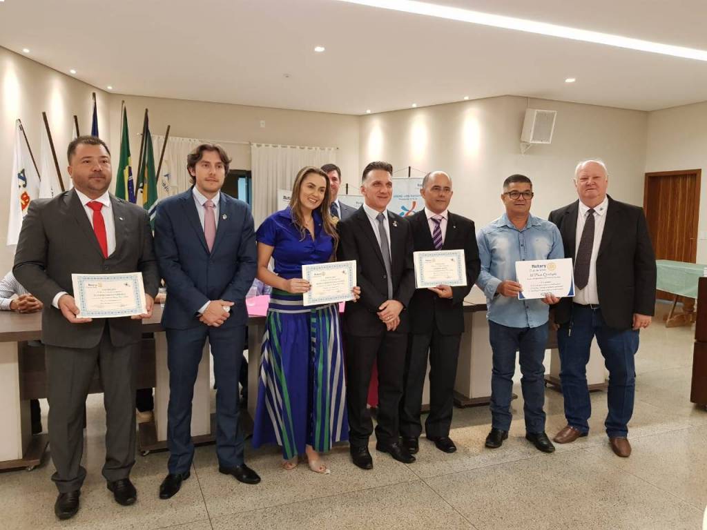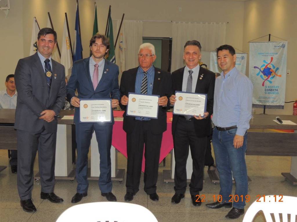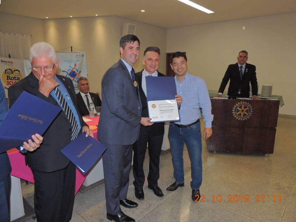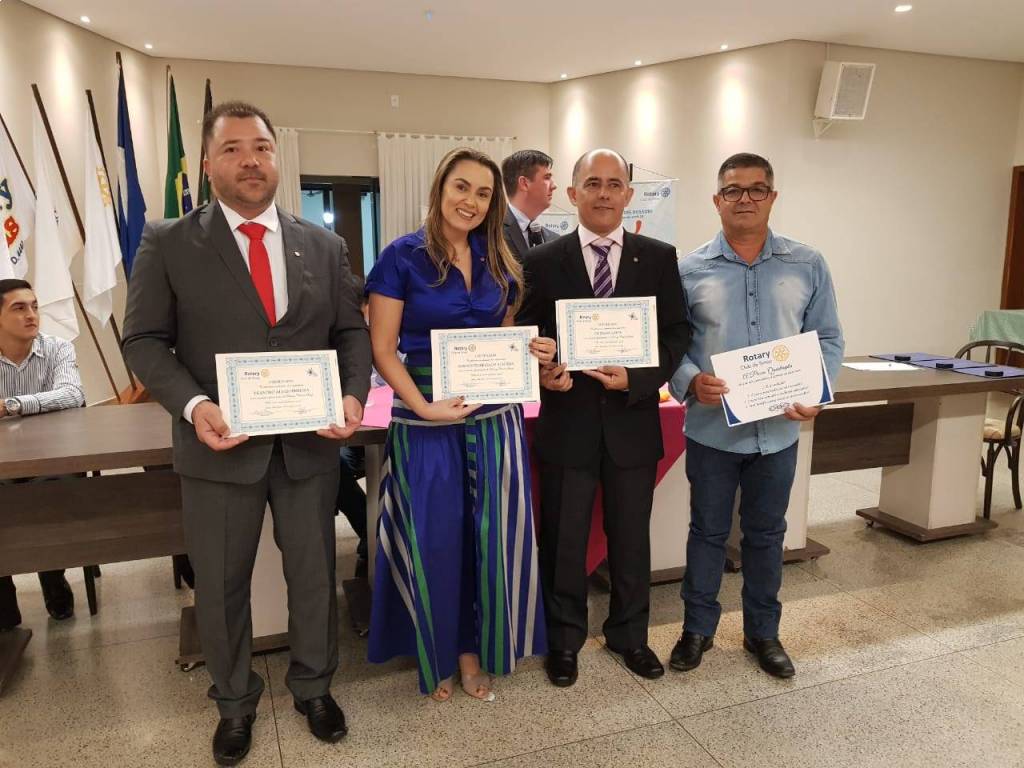 Nesta terça feira, 22/10/2019, uma festiva marcou a admissão de 04 (quatro) novos associados ao Rotary Club de Sinop. Abel do Nascimento Cardoso, gerente operacional da Sanetran Saneamento Ambiental Eireli, Emerson Lopes, gerente administrativo da Madeiras Maluan, Leandro Alves Ferreira, gerente administrativo do Auto Posto Sinop, e Rosinei Ferreira Almeida (Rosy), gerente da Eletromóveis Martinello, passam a compor o quadro associativo do Rotary Club de Sinop como associados representativos. A noite também foi marcada com a entrega do título de associada honorária a companheira Melita Erna Kist, coordenadora do Banco Ortopédico que é um dos principais projetos realizados pelo Rotary Club de Sinop, e pela entrega de três títulos de Companheiro Paul Harris. Os títulos de Companheiro Paul Harris foram entregues aos companheiros Armando Missasse, Robson Correa de Morais e Tiago Pacheco dos Santos, em reconhecimento à prestação de tangíveis e significantes serviços com o objetivo de fomentar a compreensão e as relações amistosas entre os povos do mundo. Finalizamos a noite com um excelente jantar de confraternização entre todos os companheiros rotarianos, visitantes e convidados.