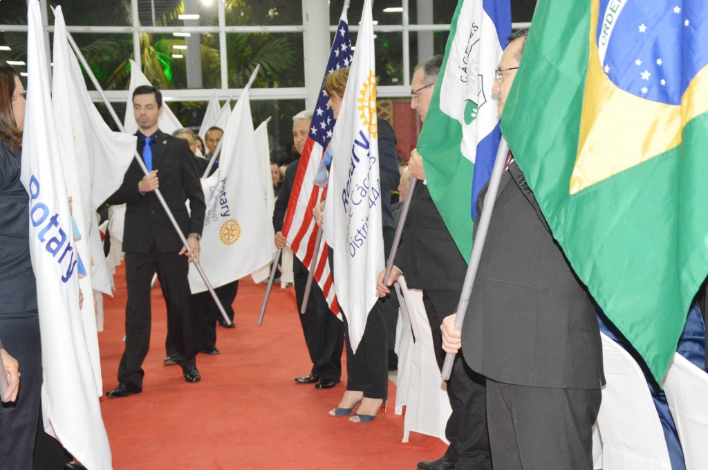 Para dar início à solenidade, Governadores Assistentes e presidentes de clubes receberam a nova Governadora com bandeiras representando o Brasil, Estado, Distrito e clubes participantes.